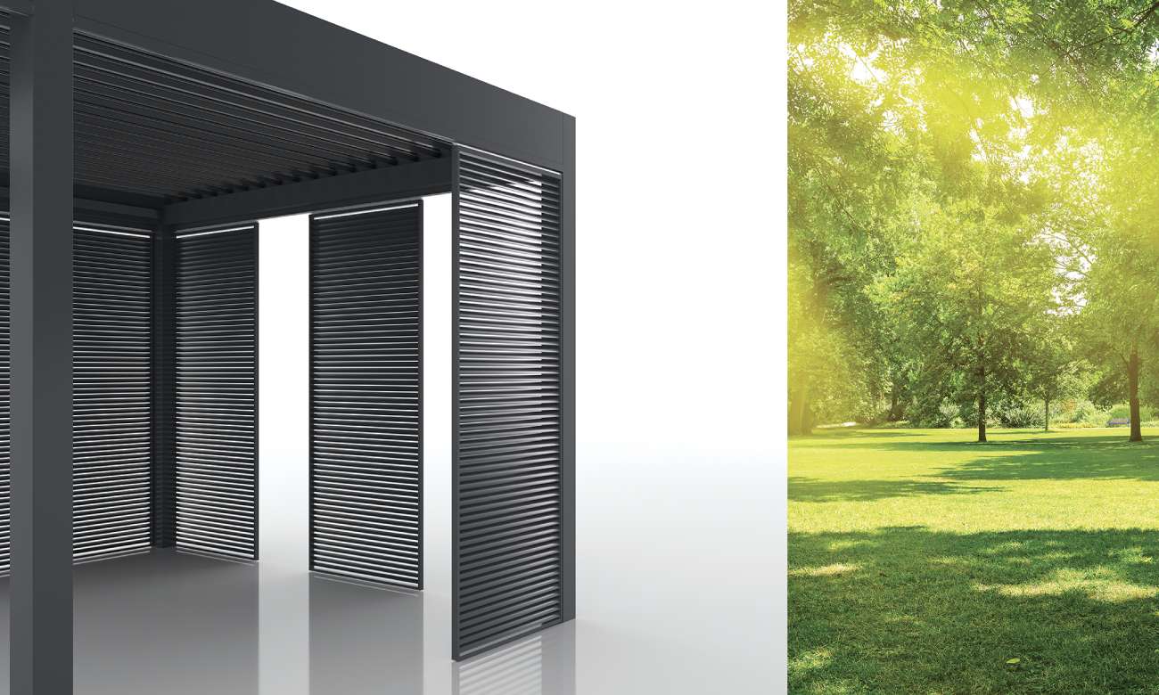 V konstrukcijo pergole je mogoče vstaviti drsne pokončne panele, s katerim ustvarite učinkovito bočno senčenje, predvsem na delih, ki so bolj izpostavljeni soncu. Paneli so na voljo v treh širinah, in sicer 900, 1000 in 1.100 mm.